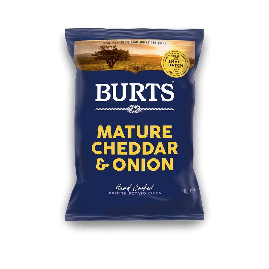 Savor the bold, tangy taste of mature cheddar paired with sweet onion in these hand-cooked crisps. Made with premium potatoes, real cheese powder, and natural flavors, they deliver an irresistible crunch and gourmet flavor in every bite. Perfect for a delicious, satisfying snack!