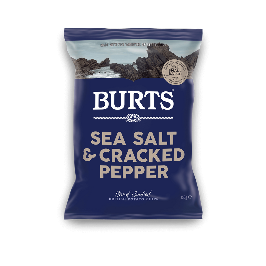 Experience the perfect balance of bold and zesty with Burts Sea Salt & Crushed Pepper Crisps. These hand-cooked crisps combine the simplicity of sea salt with the fiery kick of crushed mixed peppercorns for a flavor that’s both classic and exciting. Made with premium potatoes, natural flavorings, and a touch of onion powder, they’re a gourmet snack that delivers a satisfying crunch and a peppery punch in every bite. Perfect for those who love a little spice with their savory!