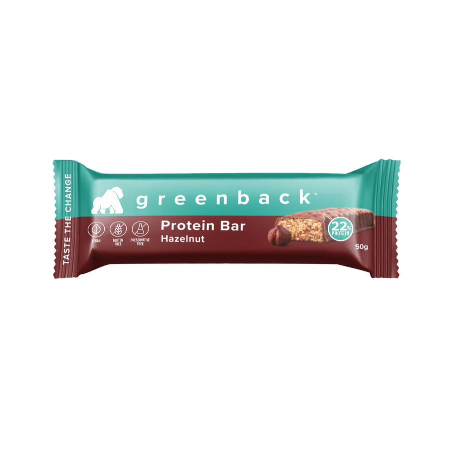 Bite into decadent dairy-free dark chocolate coating to experience pure smooth hazelnut heaven. The flavour is indulgent and delicious without the guilt of a confectionery bar. With each mouth-watering bite, you'll savour the perfect blend of sweet and nutty. You'll satisfy your cravings but also support your wellness goals. Greenback protein bars offer a good source of protein and fibre, and are free from preservatives, gluten and dairy.