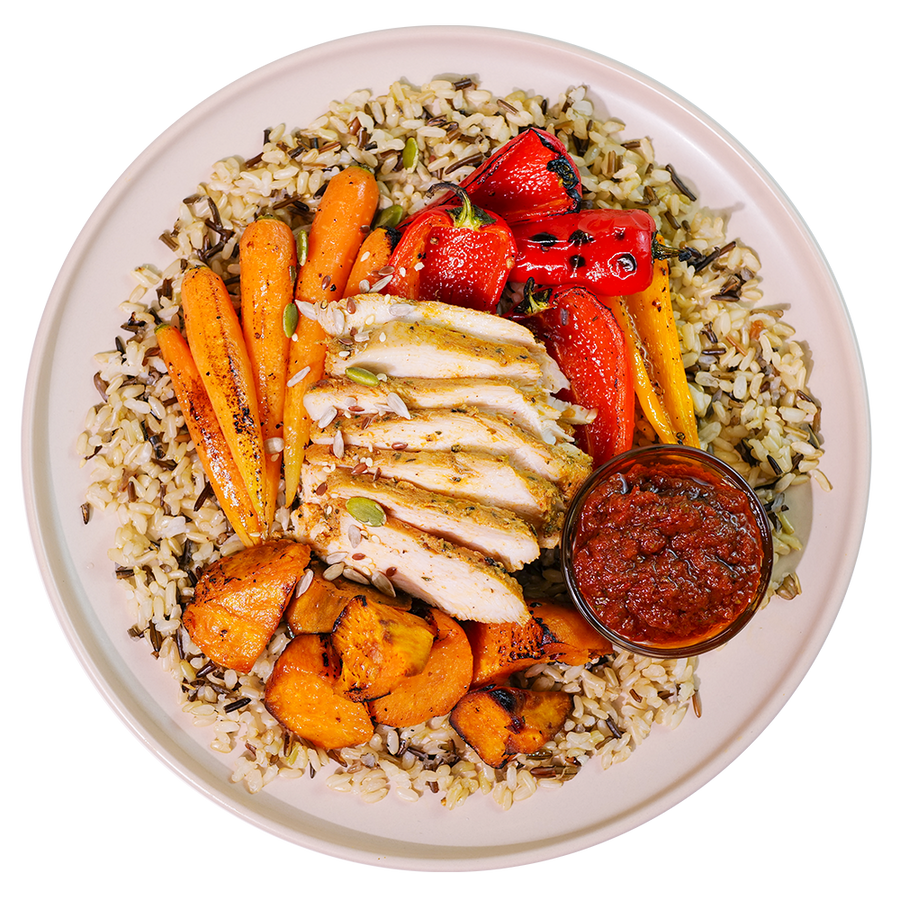 Meet the Malibu Power Bowl – a vibrant blend of sous-vide chicken, organic wild rice, roasted sweet potatoes, baby carrots, baby capsicum, mixed seeds, and a zesty Chipotle Chimichurri. Packed with wholesome ingredients and bold flavours, it’s the perfect balance of nutrition and taste in every bite.