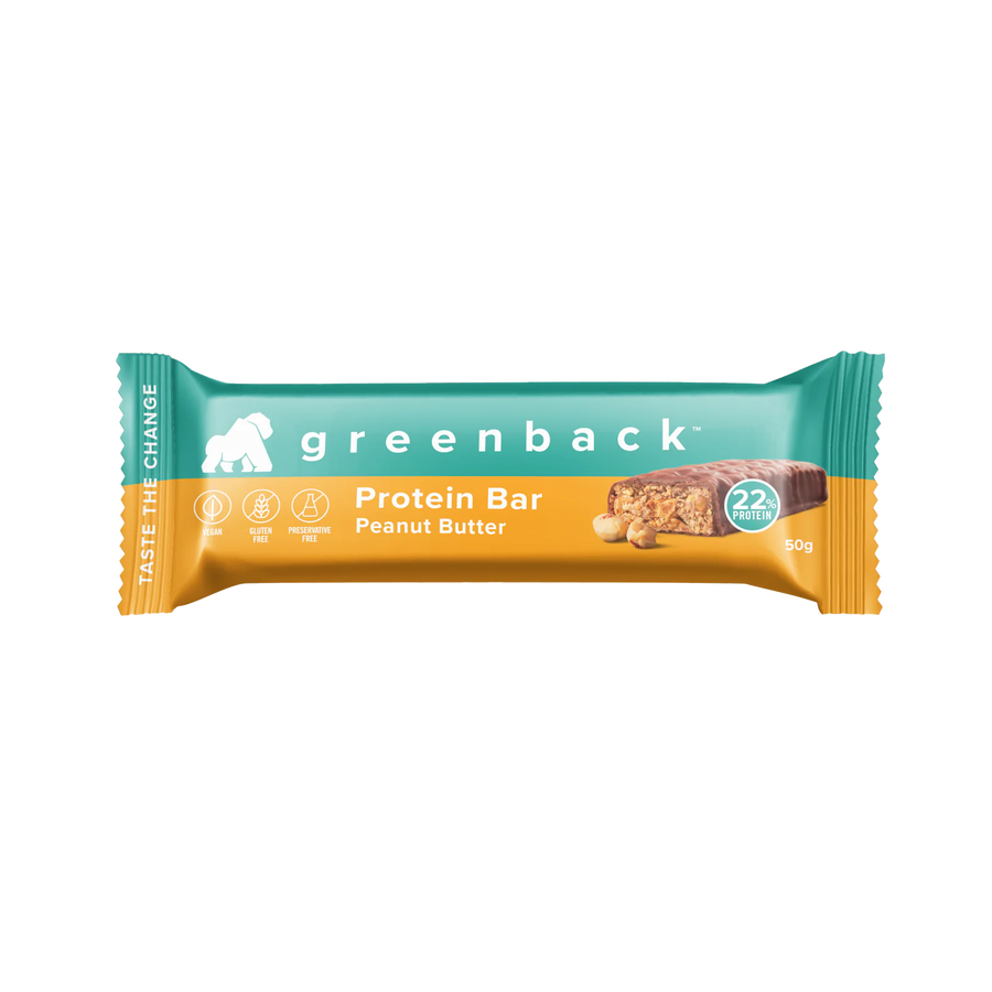Greenback's peanut butter protein bar is a wholesome delight that will leave you craving more. We've combined the creamy richness of pure plant-based peanut butter with the satisfying goodness of a protein-packed snack. Covered in dairy-free dark chocolate, it's not just a treat for your taste buds but also a convenient and nutritious choice to fuel your day. Greenback protein bars offer a good source of protein and fibre, and are free from preservatives, gluten and dairy.