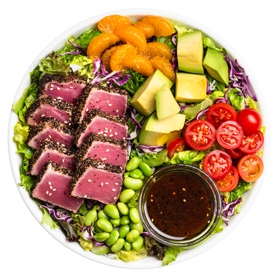 Tuna San is a healthy, Japanese-inspired wrap packed with mixed greens, seared tuna, avocado, edamame, cherry tomatoes, mandarin orange, sesame seeds, and a Wasabi Honey Soy dressing. This delightful wrap offers a perfect balance of fresh flavours and nutrients, making it a delicious and satisfying option for those seeking a wholesome meal.